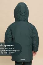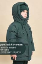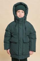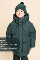 Куртка зимняя для мальчика. Модель прямого силуэта, объем - умеренный оверсайз. Куртка гладкая, без стёжки — суперактуальный тренд сезона. При этом утеплитель простёган внутри изделия — он равномерно распределён и надёжно зафиксирован. На внешнюю поверхность материала нанесена водоотталкивающая пропитка (DWR), она задерживает грязь и влагу снаружи — ребёнок не промокнет от снега, а комбинезон легко отстирается. Также есть дополнительная пропитка на внутренней стороне ткани — для более надёжной защиты от промокания. Капюшон с двумя швами, что обеспечивает анатомически правильную форму и комфортную посадку по голове. Легко одевается на шапку. Высокое забрало капюшона защищает шею и лицо от холода и ветра. Горло закрыто, шарф не нужен. Объём капюшона регулируется эластичным шнуром со стопперами. Центральная застёжка на пластиковую тракторную молнию, разъёмную с двух сторон — удобно садиться, пуллеры металлические, прочные. Сверху планка на велькро (липучках) — быстро застёгивается и расстёгивается. Куртка тепла