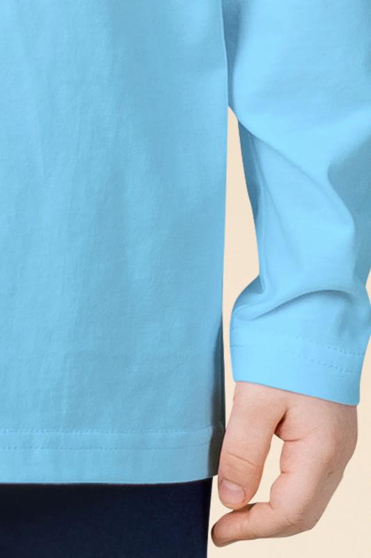 выполнена из 100% хлопка — оптимальный состав для детской пижамы. Изделие мягкое, отлично пропускает воздух, позволяя коже ребёнка дышать. При этом в пижаме из хлопка ребёнку будет комфортно, даже если он сбросит одеяло во сне. Джемпер и брюки среднего объёма, рукава свободные — в пижаме очень удобно спать. Широкая и мягкая резинка в поясе не перекручивается и не давит. Манжеты брюк и отделка горловины джемпера из эластичной рибаны — они не растягиваются, пижаму удобно надевать и снимать. Брюки выполнены в трендовом синем цвете и лаконичном дизайне. Джемпер голубого цвета декорирован уютным принтом с позитивным текстом. Перевод: "