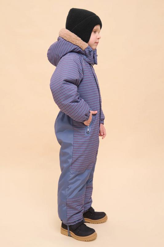 Комбинезон зимний детский из мембранной ткани. Модель свободного объёма с рукавами кроя реглан подарит ребёнку комфорт и не будет стеснять его движений. На внешнюю поверхность материала нанесена водоотталкивающая пропитка (DWR), она задерживает грязь и влагу снаружи — ребёнок не промокнет. Также есть дополнительная пропитка на внутренней стороне ткани. Капюшон двухшовный, что обеспечивает анатомически правильную форму и комфортную посадку по голове. Капюшон не отстегивается, предусмотрена регулировка объема эластичными шнурами с пластиковыми стопперами. Центральная застёжка на тракторную молнию с двумя пуллерами. Тканевый стоппер защищает подбородок от зажима молнией. Фиксирующая строчка предохраняет планку от «заедания» в процессе застёгивания. Комбинезон тёплый — дополнительно, для защиты от ветра и холода, центральная молния закрыта ветрозащитной планкой на кнопках и липучках (велкро). Спинка по талии присборена на внутреннюю резинку — комбинезон для мальчика безупречно садится по фигуре и не выглядит меш