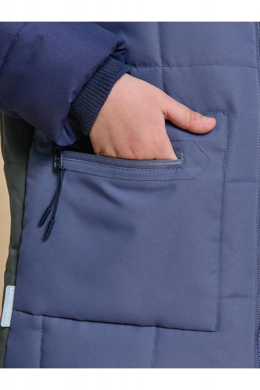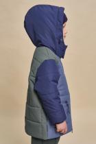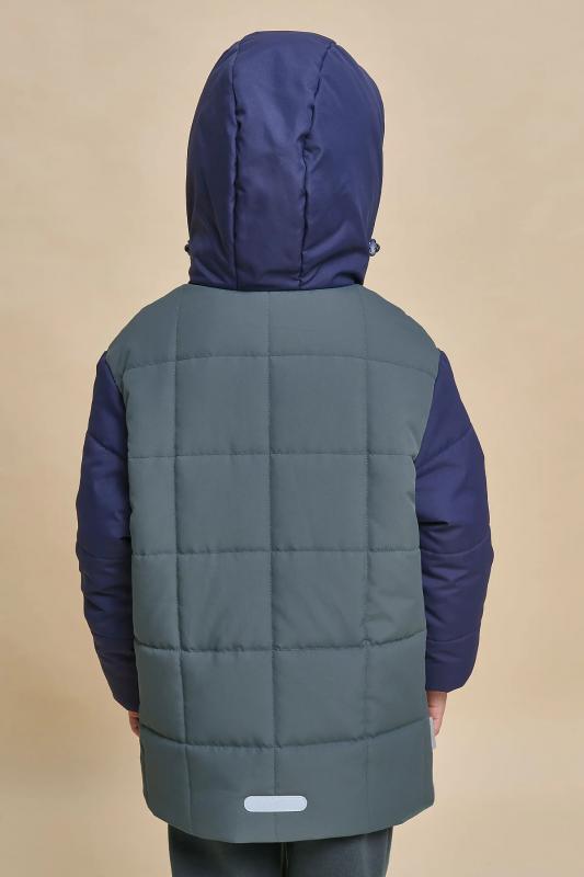 Куртка детская демисезонная на синтепоне для мальчиков, прямого силуэта. Изделие выполнено из курточной ткани с водоотталкивающим покрытием — ребёнок не промокнет под дождём. Капюшон двухшовный, что обеспечивает анатомически правильную форму и комфортную посадку по голове. Капюшон не отстегивается, застёгивается на липучки (велкро) — ребёнку просто застёгивать и расстёгивать. Предусмотрена регулировка объема эластичными шнурами с пластиковыми стопперами. Центральная застёжка на пластиковую тракторную молнию, разъёмную с двух сторон — удобно садиться, пуллеры металлические, прочные. Куртка тёплая — дополнительно, для защиты от ветра и холода, центральная молния с изнаночной стороны закрыта ветрозащитной планкой. По низу рукавов внутренние трикотажные манжеты — они препятствуют задуванию ветра. На переде и спинке выполнена декоративная стёжка — актуальный тренд. Изюминка куртки — накладные карманы с водонепроницаемой молнией со скрытыми звеньями, которая вставлена в фигурную рамку. Содержимое карманов не постр