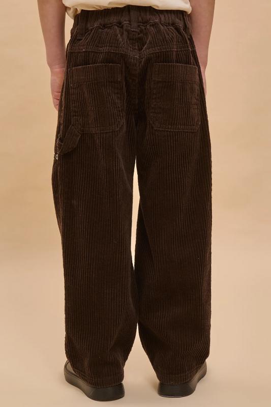 Брюки вельветовые в рубчик для мальчика. Брюки прямые модного широкого силуэта — не будут сковывать движений ребёнка и подарят комфорт. По переду удобные боковые карманы, на спинке кокетка и накладные карманы для мелочей. Спереди брюки украшают оригинальные декоративные членения, создающие эффект брюк рабочего, сбоку декоративная петля из основной ткани — трендовые, стильные детали. Классическая застёжка на молнию и пуговицу. В поясе со стороны спинки резинка, что обеспечивает идеальную посадку и прилегание. В поясе предусмотрена внутренняя регулировка ширины изделия по талии. Брюки однотонные, без принта. За ними просто ухаживать. В составе ткани 100% высококачественного хлопка — штаны мягкие и безупречно пропускают воздух, позволяя коже ребёнка дышать. Модель выполнена в актуальном тёмно-сером цвете. Серые брюки легко сочетать с различными джемперами, футболками, свитшотами, худи, куртками. Размерный ряд: 3 (98): 4 (104): 5 (110): 6 (116): 7 (122): 8 (128): 9 (134): 10 (140): 11 (146). Отличные брюки для м