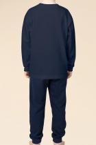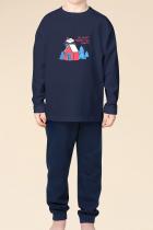 Детская пижама– уютный комплект бренда Pelican, состоящий из лонгслива и брюк. Комфортный сон очень важен для роста и восстановления организма ребенка, поэтому пижама малышу должна обеспечивать максимальный комфорт и защиту. Пижама для мальчика бренда Pelican создана из натурального хлопка, сохраняет тепло, гигроскопична, впитывает влагу. Материал позволяет коже ребенка дышать, мягкая резинка брюк не стягивает, не натирает, по низу брюк манжеты. Изделие после стирки не садится, не растягивается, не линяет. Джемпер с круглым вырезом горловины, спущенным рукавом. Брюки прямые, оптимальной ширины. Ровные мягкие швы, отделка по горловине и манжеты на рукавах и низу брюк придают этой пижаме для детей лаконичный образ и модное исполнение. Широкая размерная сетка позволяет подобрать оптимальный размер как для малыша, так и подростка. Пижама для мальчика очень удобна, она обязательно понравится ребенку и подарит хорошее настроение. Модель из зимней коллекции сочетается с носками с рисунком темно-синего цвета. Цвет к