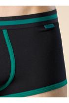 . Шорты подходят и для занятий спортом, активного отдыха. Трусы декорированы контрастным пайпингом в стиле 70-х — актуальный модный тренд. Модель представлена в классическом чёрном цвете — подойдёт под любую одежду. Элегантный базальтовый (серый графит) и стильный оттенок нэви понравятся тем, кто любит разнообразие.