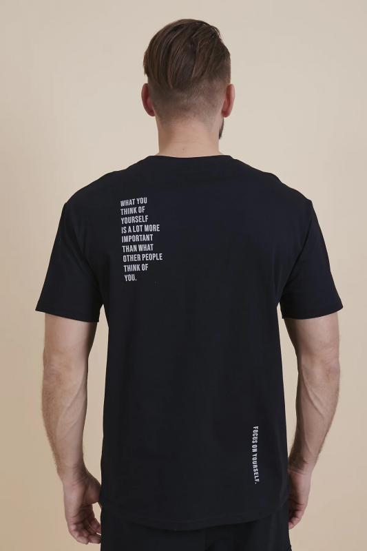 Мужская футболка оверсайз с принтом. Футболка свободного кроя подарит вам комфорт и свободу движения. Джемпер такого силуэта скрывает недостатки фигуры и подчёркивает достоинства. Майка с комфортными свободными рукавами идеальна для повседневной носки. Модель неприхотлива в уходе. Трикотажная футболка по спинке украшена стильными лаконичными принтами, оригинально расположенными не по центру. Надписи переводятся: "