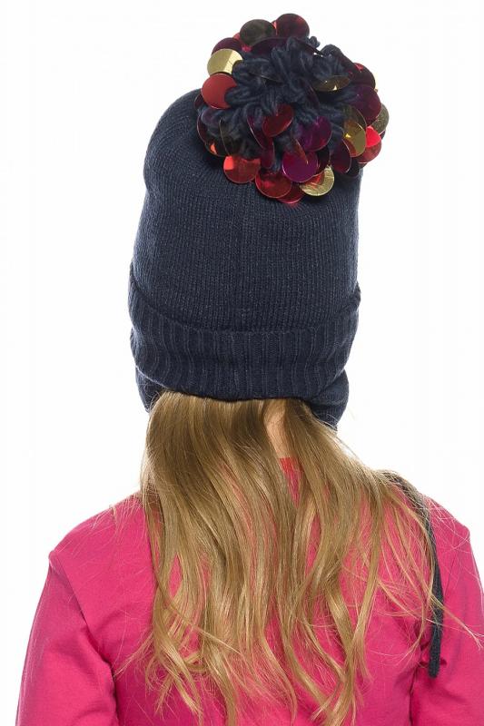 Шапка для девочек. НОВЫЙ необычный помпон с крупными пайетками. Вязаная шапка на флисе с отворотом. Двойные ушки с завязками придают особое тепло и уют для самых маленьких, по переду изделия разноцветные пайетки.