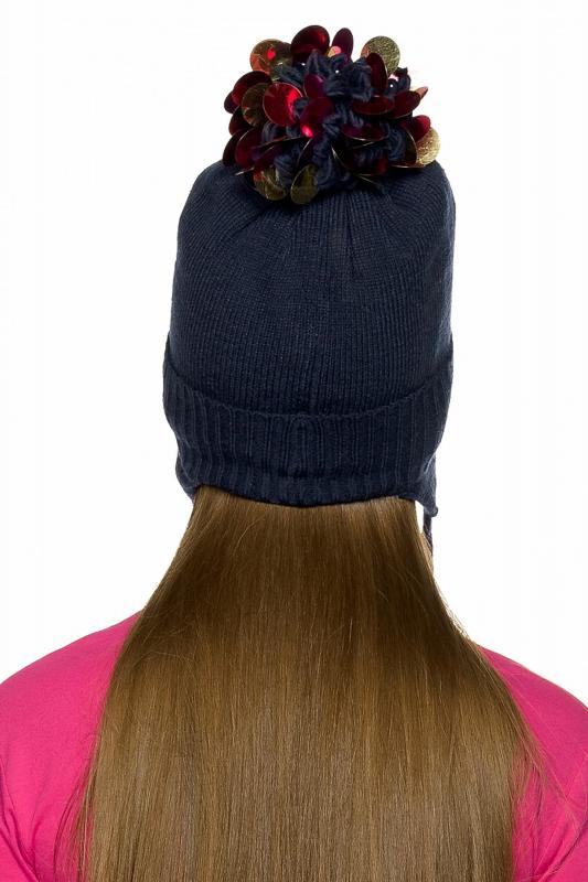 Шапка для девочек. НОВЫЙ необычный помпон с крупными пайетками. Вязаная шапка на флисе с отворотом. Двойные ушки с завязками придают особое тепло и уют, по переду изделия разноцветные пайетки.