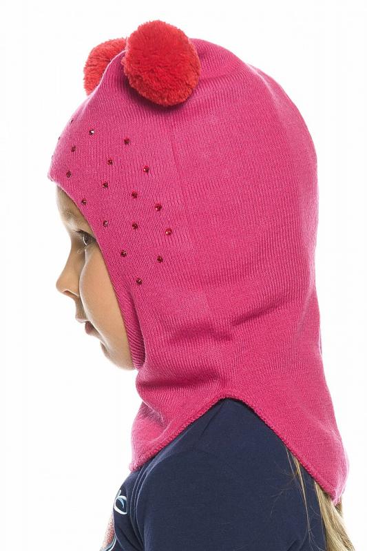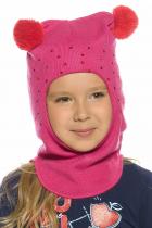Новинка! Зимняя шапка - шлем для девочек, зона ушей и лба утеплена синтепоном, перепад длины переда и спинки, по переду изделия декоративные стразы, помпоны контрастного цвета