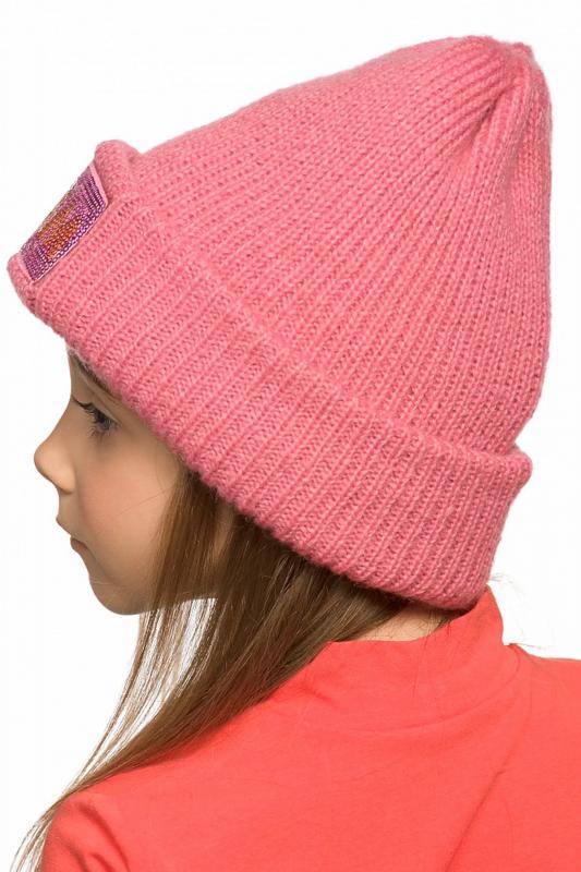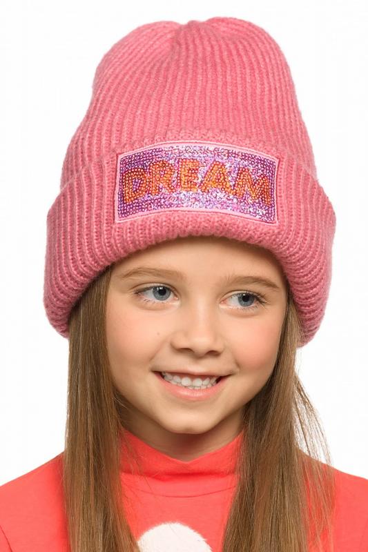 Шапка для девочек на подкладе из флиса из новой пушистой пряжи с двойным отворотом. По переде декоративная нашивка из пайеток надпись Мечта.