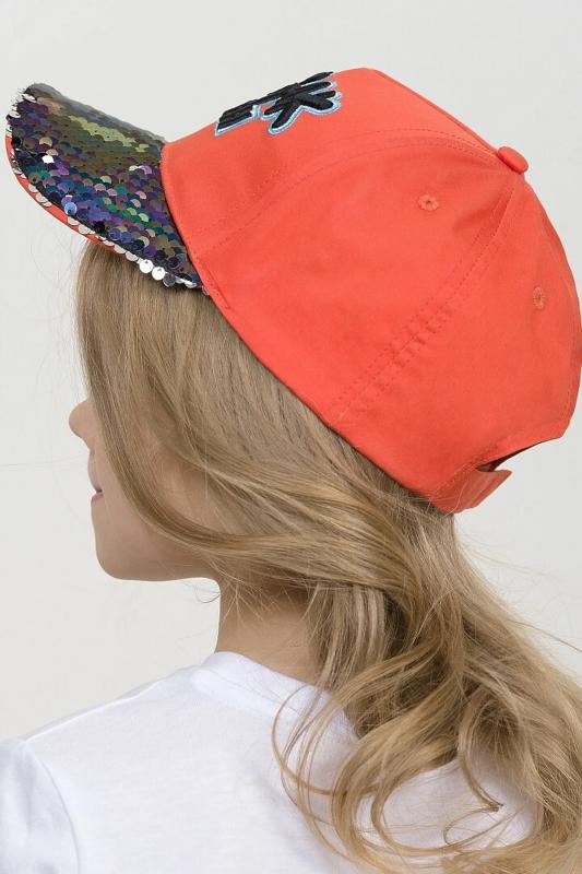 Кепка для девочек. Верх козырька кепки из двухсторонних пайеток фиолетового дуохрома и серебряного цвета. Текстовая вышивка. Перевод Не как все. Застежка велькро.