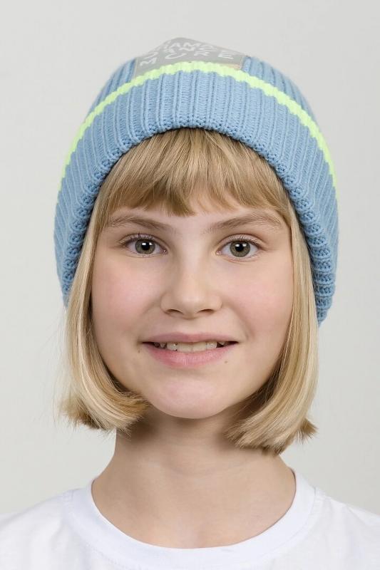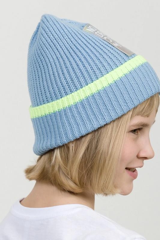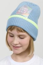 Мягкая одинарная шапка вязкой 1х1. Декор голограммная нашивка с текстом. Перевод Не драматизируй, а больше танцуй. Шапка слегка вытянута вверх, конической формы.