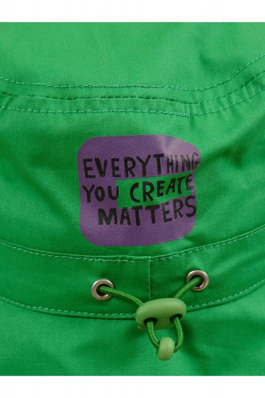 Стильная детская панама. Модель со стандартными по ширине полями. Яркая хлопковая панама станет отличным дополнением детского летнего гардероба. По всему периметру изделия проходит эластичный шнур со стоппером — с его помощью можно зафиксировать панаму на голове. Модель дополнена отверстиями, что обеспечивает воздухообмен и комфорт при носке. Панама однотонная, декорирована лаконичным и стильным принтом с позитивным настроением (надпись переводится: «Всё, что ты создаёшь, важно»). Размерная линейка: 48-50, 51-52, 53-54. Панама детская представлена в следующих цветах: чёрный, синий, жёлтый, зелёный, розовый, бежевый, тёмно-синий, светло-зелёный. Каждый ребёнок найдёт цвет по душе! Такая панамка подходит детям дошкольного и младшего школьного возраста, а также подросткам. Панама летняя незаменима для пляжа, дачи, похода, прогулок, отдыха — отлично защитит от солнца. Превосходно сочетается с любой одеждой. Чудесный подарок дочке, сыну, внучке или внуку на любой праздник. Выбирайте нужный размер по таблице разме
