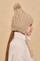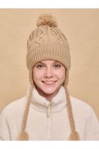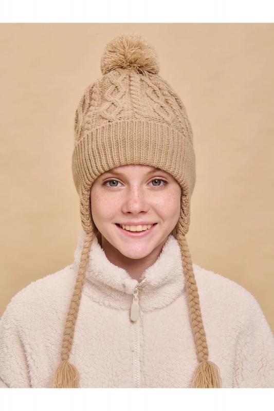 Стильная и уютная детская шапка с помпоном. Нейтральный дизайн делает её подходящей и мальчикам, и девочкам. Модель с отворотом и цельновывязаными функциональными ушками с завязками выполнена из 100% акрила. Материал тёплый, приятный на ощупь и очень комфортный. Шапку легко стирать — она не растягивается, не мнётся и сохраняет первозданный вид надолго. Отличные терморегулирующие свойства акрила позволяют носить изделие в холодную погоду. Внутри флисовая подкладка. Она мягкая и обеспечивает дополнительную защиту от холода. Модель хорошо садится по голове ребёнка, плотно прилегает, не сползает. Основная вязка шапки — модные текстурные “косы”. Цельновывязаные ушки по бокам прикрывают уши ребёнка от холода и ветра. Декоративные завязки выполнены в виде косичек с кисточками — оригинально и стильно. Помпон выполнен из ниток в тон изделия. Эта модель станет отличным подарком для маленьких модников!