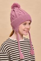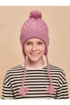 Стильная и уютная детская шапка с помпоном. Нейтральный дизайн делает её подходящей и мальчикам, и девочкам. Модель с отворотом и цельновывязаными функциональными ушками с завязками выполнена из 100% акрила. Материал тёплый, приятный на ощупь и очень комфортный. Шапку легко стирать — она не растягивается, не мнётся и сохраняет первозданный вид надолго. Отличные терморегулирующие свойства акрила позволяют носить изделие в холодную погоду. Внутри флисовая подкладка. Она мягкая и обеспечивает дополнительную защиту от холода. Модель хорошо садится по голове ребёнка, плотно прилегает, не сползает. Основная вязка шапки — модные текстурные “косы”. Цельновывязаные ушки по бокам прикрывают уши ребёнка от холода и ветра. Декоративные завязки выполнены в виде косичек с кисточками — оригинально и стильно. Помпон выполнен из ниток в тон изделия. Эта модель станет отличным подарком для маленьких модников!