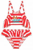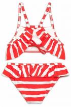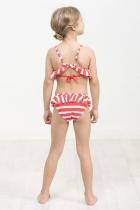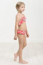 Раздельный купальник для девочек. Верх топ с декоративной рюшей по проймам, лямки с регулировкой по длине. На подкладе. Регулировка по ширине завязками на спинке. Низ трусы с увеличенной высотой посадки. Рюша по верхнему краю, перед на подкладе.