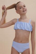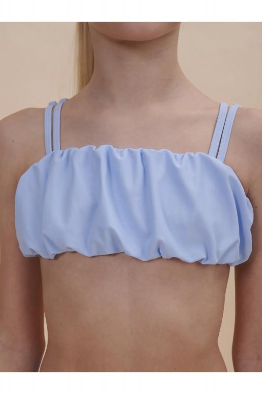 Яркий и стильный раздельный купальник для девочки. Топ актуальной объёмной формы"