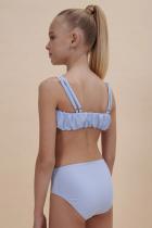 — по низу и верху сборки. Топ двойной, не просвечивает. Двойные тонкие и мягкие бретели не сползают, исключают трение и раздражение. Сзади предусмотрена возможность регулировки длины бретелей. Трусы классические высокой посадки, аккуратные и комфортные. Детский купальник выполнен из полиамида и эластана — он прекрасно тянется, не теряя при этом своей формы, не выгорает и быстро сохнет. Модель представлена в четырёх трендовых цветах: голубой, жёлтый, розовый и зелёный. Купальный костюм однотонный, без декоративных элементов. В линейке представлены детские купальники следующих размеров: 3 (98): 4-5 (104-110): 6-7 (116-122): 8-9 (128-134): 10-11 (140-146). Купальник красивый подходит для девочек дошкольного, младшего школьного возраста и девочек-подростков. Идеальный вариант для летнего отдыха, пляжа, моря и бассейна. Модный купальник — замечательный подарок дочери, внучке или сестре на любой праздник. Выбирайте н