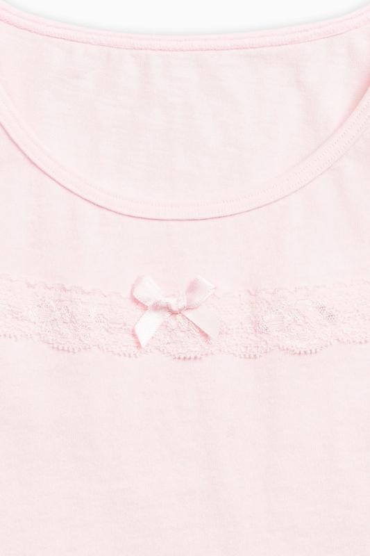 Майка для девочек. Классическая майка на широких лямках. На передней части изделия, по груди, декоративная кружевная лента и атласный бантик.