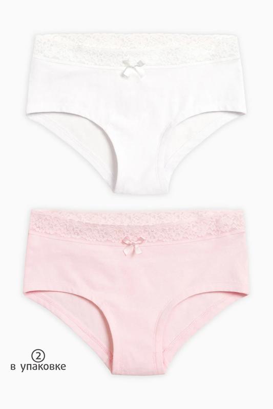 Трусики-шортики для девочек. Комплект из 2-х трусиков. По талии декорированы кружевным эластиком и атласным бантиком.