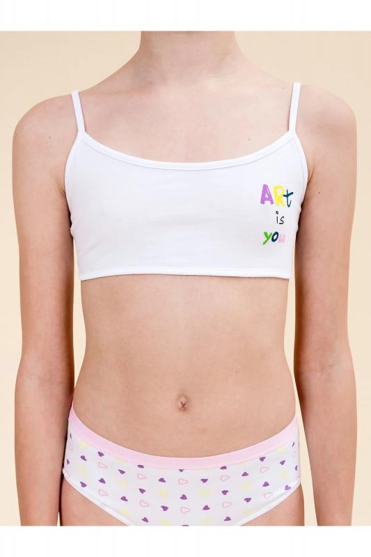 . Принт мягкий и устойчивый, отлично переносит стирки. В линейке представлены следующие размеры: 7 (122): 8 (128): 9 (134): 10 (140): 11 (146). Кроп топ детский отлично подходит для носки под одеждой — идеальный выбор белья для девочки младшего школьного возраста