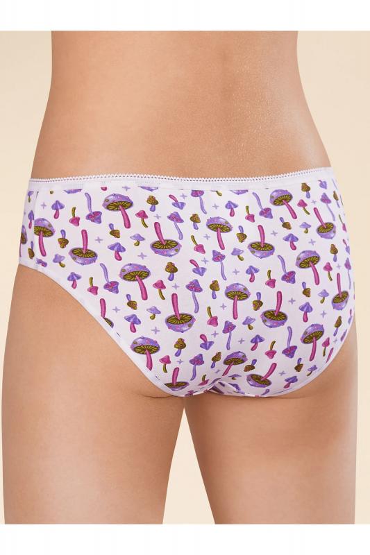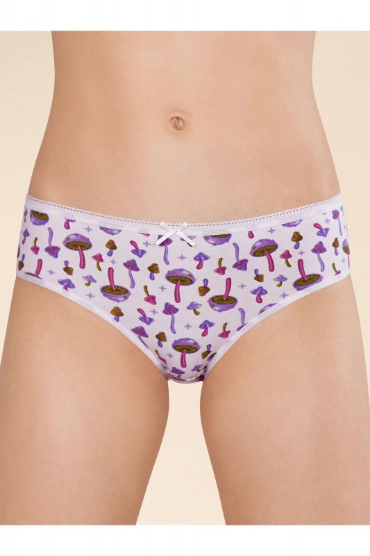 Комплект трусов для девочки из 3-х шт. Слипы средней посадки выполнены из ткани с высоким содержанием хлопка — модель мягкая, гипоаллергенная и прекрасно пропускает воздух. Благодаря эластану слипы для девочки надолго сохраняют отличную форму, даже после многочисленных стирок. Качественная ткань и анатомически правильный крой обеспечивают комфортную посадку на теле. Мягкая резинка исключает раздражение и трение. В комплект входят трусы детские для девочки трёх расцветок, которые обязательно понравятся любой девочке. Трусики для девочки украшены весёлым принтом в виде грибочков, на одних трусиках есть также надпись (перевод «хорошие вещи произойдут с тобой»). Принты эластичные и стойкие, без проблем переносят частые стирки. Хлопковые трусы подходят девочкам дошкольного возраста. Помните о правильном уходе за изделием: рекомендуется стирать при температуре не выше 30 °C, без предварительного замачивания, с изнанки. Это поможет сохранить качество и цвет белья на длительное время. Не забывайте о выборе правильно
