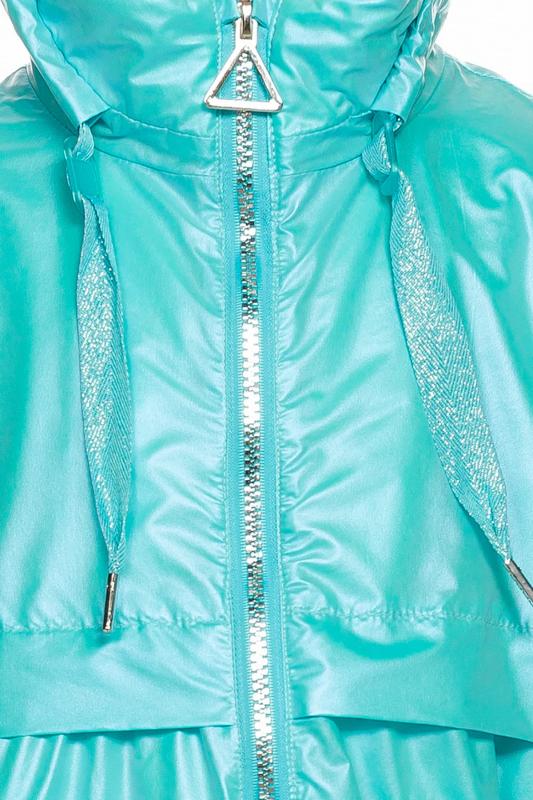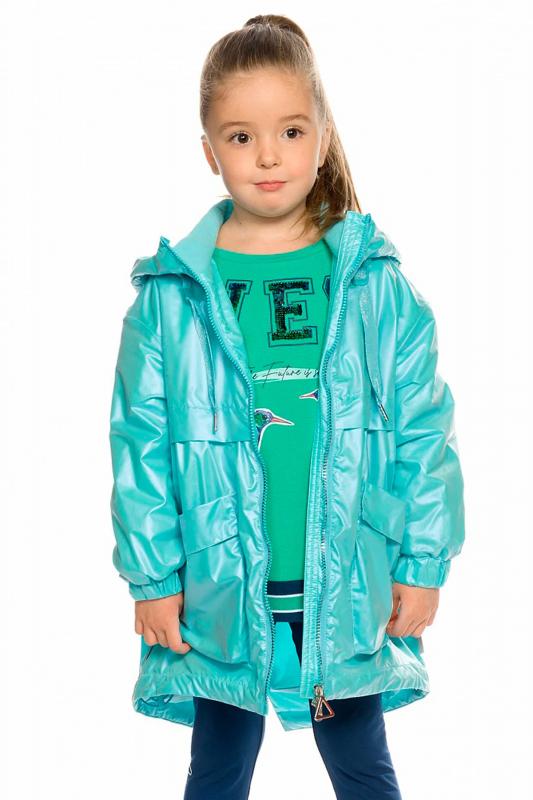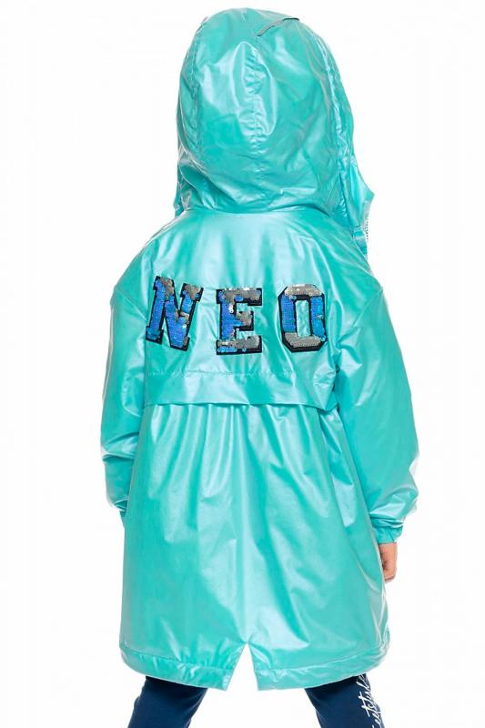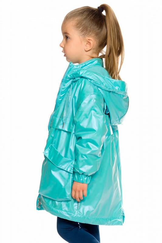 Плащ для девочек. Новая ткань с перламутровым блеском. Утепленная парка для девочек. Температурный режим до +5°С. Удлинённая модель с перепадом длины по спинке и переду. Многозональный подклад флис по стану, в капюшоне и на внутреннем воротнике, утеплитель из легкого синтепона в рукавах и ниже линии талии. Курточная ткань с двусторонним водоотталкивающим покрытием. Прямой, чуть зауженный книзу силуэт, с декоративным горизонтальным членением чуть выше талии. Новая конструкция капюшона вместо классической регулировки объема по краю капюшона спроектирована специальная деталь - держатель из основной ткани, в которую продета репсовая тесьма с люрексом и пластиковыми стопперами. Верхняя часть умеренного объема с втачным рукавом, слегка спущенное плечо, создающее мягкую форму. Рукав по низу фиксируется на манжету из основной ткани с эластичной резиной внутри. Нижняя часть ветровки присборена по шву притачивания и заужена книзу, декорирована большими накладными карманами-портфелями с отворачивающимся цельнокроеным к
