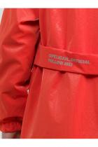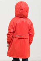 Утепленный плащ синтепон 40 г-м2 в рукавах, подклад из флиса в капюшоне, по стану и на внутреннем воротнике. Рекомендуемый температурный режим не ниже плюс 5 градусов. Силиконизированная ткань крэш с благородным матовым блеском. Водоотталкивающее покрытие. Прямой силуэт, по переду с декоративным горизонтальным членением чуть выше талии и легким плавным перепадом длин по низу изделия. Двухшовный неотстегивающийся капюшон с регулировкой объема, переходящий в воротник стойку. Изюминка большие накладные карманы и две принтованные репсовые ленты с оригинальными наконечниками, один из которых декорирован пайетками. По спинке широкий отлетной пояс со световозвращающим принтом, перевод Следуй за мной. Световозвращающие элементы вдоль застежки молнии.