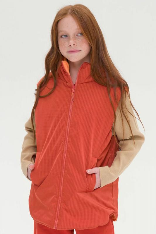 Новинка. Современный и стильный двухсторонний жилет для девочек. Одна сторона жилета из гладкой ткани, простегана вертикальными параллельными строчками, вторая без стежки, из модной фактурной ткани вафельной текстуры. Ткань тренд сезона 2023 - привлекает внимание своей эксклюзивностью и выделяет ребенка. Удобная удлиненная жилетка с контрастной отделкой, фигурной линией низа и прорезными карманами. Воротник стойка станет надежной защитой для горла. Ветрозащитная непромокаемая детская жилетка для малыша ультрамодного дизайна подарит моднице солнечное настроение. Утепленная весенняя жилетка с мембраной водонепроницаемая, защитит от ветра и дождя весной и летом, непогода больше не испортит прогулки. Жилетка на флисе, многозональный флисовый подклад. Температурный режим +5. Удобно надевать на худи, толстовки или тонкие ветровки, демисезон, теплая весна, холодное лето. Жилетка демисезонная для девочки с мембранным покрытием обладает уникальным свойством - сохраняет тепло и отводит влагу, ребенок останется сухим д