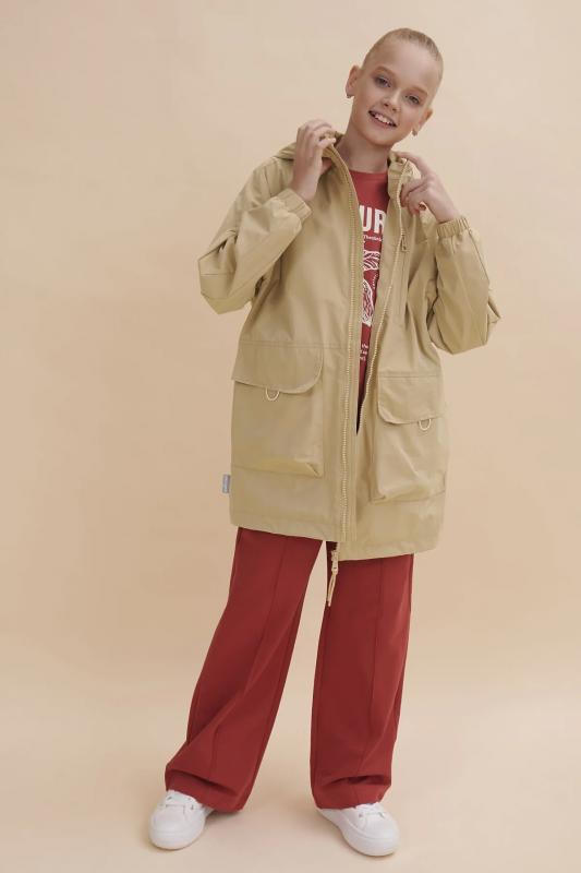 Ветровка для девочки с температурным режимом не ниже +10°С прямого, свободного силуэта. Рукав реглан имеет мягкую форму. Такой фасон подходит и замечательно смотрится на фигурах любого типа. Ткань верха бархатистая, очень приятная на ощупь, с peach-эффектом. Мембранная ткань хорошо защищает нижние слои одежды от намокания. Структура мембранной ткани позволяет коже дышать - ребенок легко двигается и не переохлаждается. Изделие сохраняет первоначальный внешний вид даже при активной носке. Водоотталкивающая пропитка или DWR (Durable Water Repellent) – «устойчивое водоотталкивающее покрытие» - защищает от промокания под дождем: материал не утяжеляется под воздействием влаги, позволяя свободно пропускать воздух. Подклад из хлопка по стану и в капюшоне, в рукавах из полиэстера для легкого надевания. Капюшон двух шовный, что обеспечивает анатомически правильную форму и комфортную посадку по голове. Капюшон не отстегивается, предусмотрена регулировка объема эластичными шнурами с пластиковыми стопперами. Куртка для д