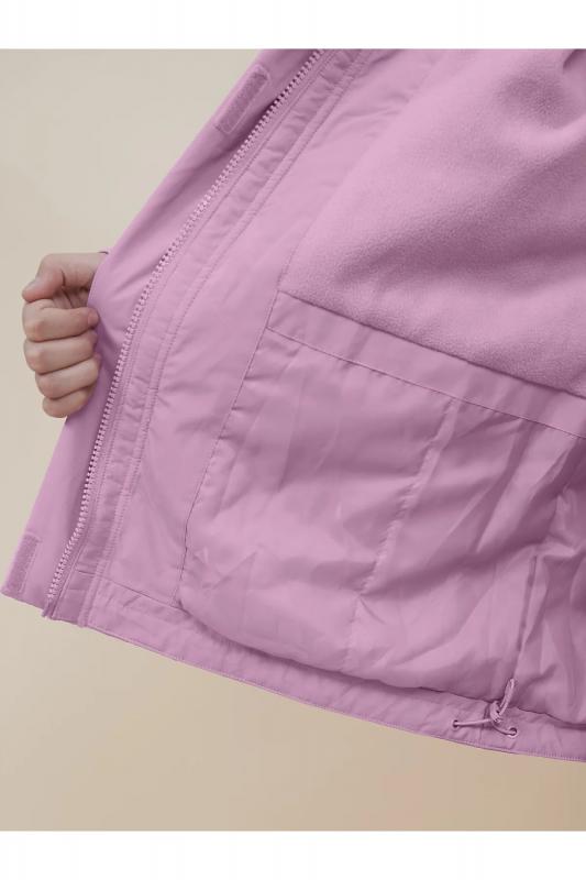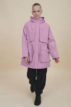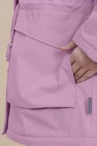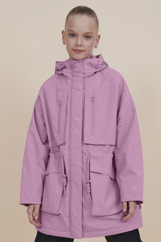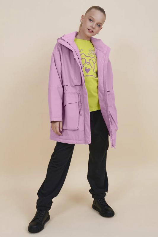 Парка для девочки с температурным режимом не ниже +5°С прямого свободного силуэта. Мягкий оверсайз. Ветровка на флисовом подкладе (верх переда и спинки, подклад капюшона из флиса, а нижняя часть переда и спинки и подкладка рукава из 100% POLY + синтепон 40г-м2 ). Мембранная ткань хорошо защищает нижние слои одежды от намокания. Структура мембранной ткани позволяет коже дышать - ребенок легко двигается и не переохлаждается. Изделие сохраняет первоначальный внешний вид даже при активной носке. Водоотталкивающая пропитка или DWR (Durable Water Repellent) – «устойчивое водоотталкивающее покрытие» - защищает от промокания под дождем: материал не утяжеляется под воздействием влаги, позволяя свободно пропускать воздух. Низ рукава прямой, внутри рукава расположена скрытая манжета из мягкой эластичной ткани. По центру переда застежка на молнию, молния закрыта планкой на застежке велькро (липы). По верху переда накладные карманы, имитирующие объемную кокетку переда. Карманы застегиваются на водонепроницаемые молнии со