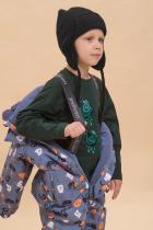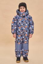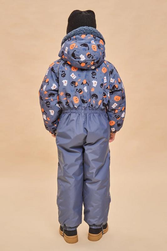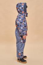 Ткань комбинезона с мембраной, которая не дает промокнуть изделию и обеспечивает хороший воздухообмен. Область колена и нижняя часть спинки выполнены из ткани-усилителя более плотной чем основная, для того чтобы в этих зонах не происходил быстрый износ. Наполнителем является новый материал Fellex G-TYPE 260 g-m2, 100%POLY. Комбинезон полностью закрывает тело ребенка. Эргономические свойства изделия обеспечивают покрой рукава-реглан, центральная застежка- молния, прибавка на свободу облегания по груди, талии и бедрам. Конструкция изделия достаточно свободная, ребенку будет комфортно играть и двигаться на свежем воздухе. В изделии есть наклонные карманы с молнией с двумя тканевыми ограничителями сверху и снизу. Карман по контору залит раборной заливкой. Для удобства в носке и лучшего прилегания по спинке в области талии проложен внутренний эластик. Также по низу рукавов и низу штанин вставлен широкий эластик, который имитирует манжету и обеспечивает прилегание к телу ребенка в этих участках. Внутри изделия сох