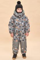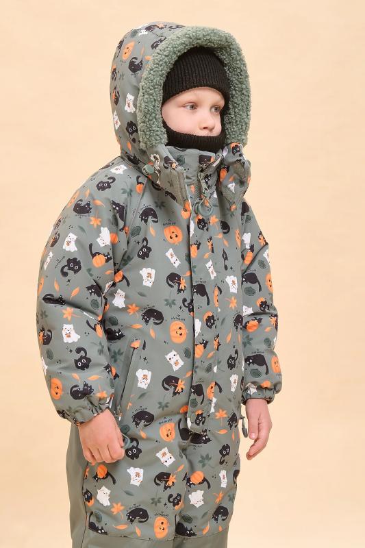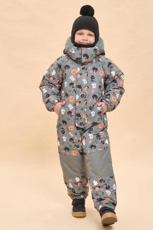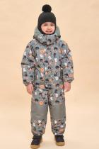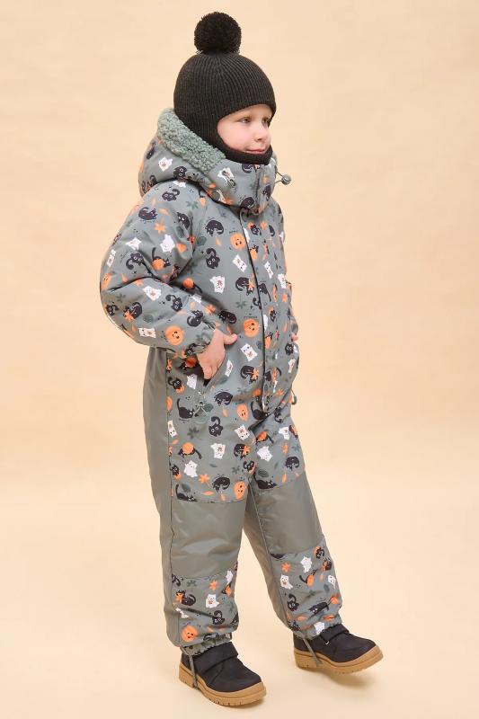 Ткань комбинезона с мембраной, которая не дает промокнуть изделию и обеспечивает хороший воздухообмен. Область колена и нижняя часть спинки выполнены из ткани-усилителя более плотной чем основная, для того чтобы в этих зонах не происходил быстрый износ. Наполнителем является новый материал Fellex G-TYPE 260 g-m2, 100%POLY. Комбинезон полностью закрывает тело ребенка. Эргономические свойства изделия обеспечивают покрой рукава-реглан, центральная застежка- молния, прибавка на свободу облегания по груди, талии и бедрам. Конструкция изделия достаточно свободная, ребенку будет комфортно играть и двигаться на свежем воздухе. В изделии есть наклонные карманы с молнией с двумя тканевыми ограничителями сверху и снизу. Карман по контору залит раборной заливкой. Для удобства в носке и лучшего прилегания по спинке в области талии проложен внутренний эластик. Также по низу рукавов и низу штанин вставлен широкий эластик, который имитирует манжету и обеспечивает прилегание к телу ребенка в этих участках. Внутри изделия сох