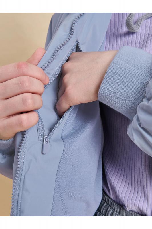 Куртка детская демисезонная на синтепоне для девочек, длиной до середины бедра. Изделие актуального оверсайз-силуэта выполнено из курточной ткани эпонж (шелковистая с шероховатой поверхностью) с водоотталкивающим покрытием — ребёнок не промокнет под дождём. Капюшон двухшовный, что обеспечивает анатомически правильную форму и комфортную посадку по голове. Высокое забрало создаёт ощущение тепла и уюта. Капюшон не отстегивается, застёгивается на скрытые магниты — ребёнку просто застёгивать и расстёгивать. Предусмотрена регулировка объема эластичными шнурами с пластиковыми стопперами. Центральная застёжка на пластиковую тракторную молнию, разъёмную с двух сторон — удобно садиться, пуллеры металлические, прочные. Куртка тёплая — дополнительно, для защиты от ветра и холода, центральная молния с изнаночной стороны закрыта ветрозащитной планкой. Рукава кроя реглан по низу собраны на манжеты из эластичной рибаны (ткань в рубчик) — они препятствуют задуванию ветра, при этом рибана долго сохраняет эластичность, не раст