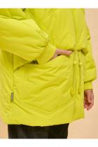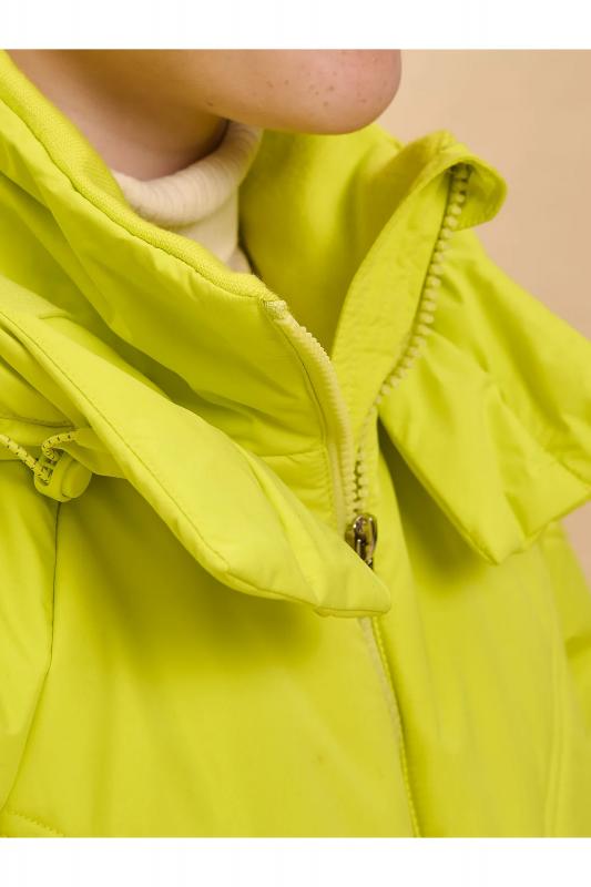 Куртка детская демисезонная на синтепоне для девочек, длиной до середины бедра. Изделие актуального оверсайз-силуэта выполнено из курточной ткани эпонж (шелковистая с шероховатой поверхностью) с водоотталкивающим покрытием — ребёнок не промокнет под дождём. Капюшон двухшовный, что обеспечивает анатомически правильную форму и комфортную посадку по голове. Высокое забрало создаёт ощущение тепла и уюта. Капюшон не отстегивается, застёгивается на скрытые магниты — ребёнку просто застёгивать и расстёгивать. Предусмотрена регулировка объема эластичными шнурами с пластиковыми стопперами. Центральная застёжка на пластиковую тракторную молнию, разъёмную с двух сторон — удобно садиться, пуллеры металлические, прочные. Куртка тёплая — дополнительно, для защиты от ветра и холода, центральная молния с изнаночной стороны закрыта ветрозащитной планкой. Рукава кроя реглан по низу собраны на манжеты из эластичной рибаны (ткань в рубчик) — они препятствуют задуванию ветра, при этом рибана долго сохраняет эластичность, не раст