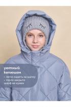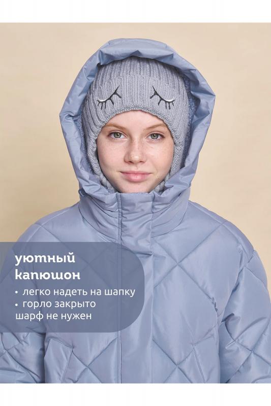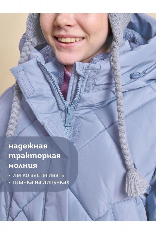 Куртка зимняя для девочки длиной до середины бедра. Модная пухлая куртка-зефирка украшена актуальной стёжкой в виде квадратных ромбов. На внешнюю поверхность материала нанесена водоотталкивающая пропитка (DWR), она задерживает грязь и влагу снаружи — ребёнок не промокнет от снега, а комбинезон легко отстирается. Также есть дополнительная пропитка на внутренней стороне ткани — для более надёжной защиты от промокания. Капюшон с двумя швами, что обеспечивает анатомически правильную форму и комфортную посадку по голове. По краю капюшона вставка, которая также придаёт милый эффект пухлости. Предусмотрена регулировка объема капюшона эластиком с пластиковыми стопперами. Подкладка капюшона и внутренний воротник из нежного и тактильно приятного бербер-флиса с фактурой «барашек». Центральная застёжка на надежную пластиковую тракторную молнию. Куртка теплая — дополнительно, для защиты от ветра и холода, центральная молния закрыта ветрозащитной планкой на липучке (велькро). По низу рукавов внутренние манжеты из эластичн