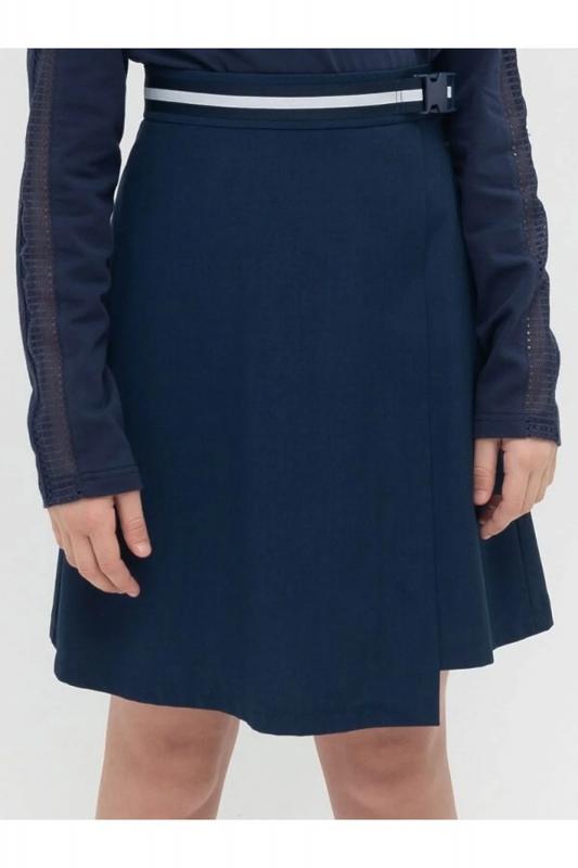 Юбка школьная из костюмной практичной ткани. Без подклада, с имитацией запАха спереди. Чтобы удобно было надевать, добавлены молния и пуговица. А пояс с регулировкой не передавливает живот.Стильный акцент модели декор с красивой тесьмой и удобной крепкой застежкой. Все это позволяет носить эту юбку не только в школу, но и в составе образов casual и спорт.