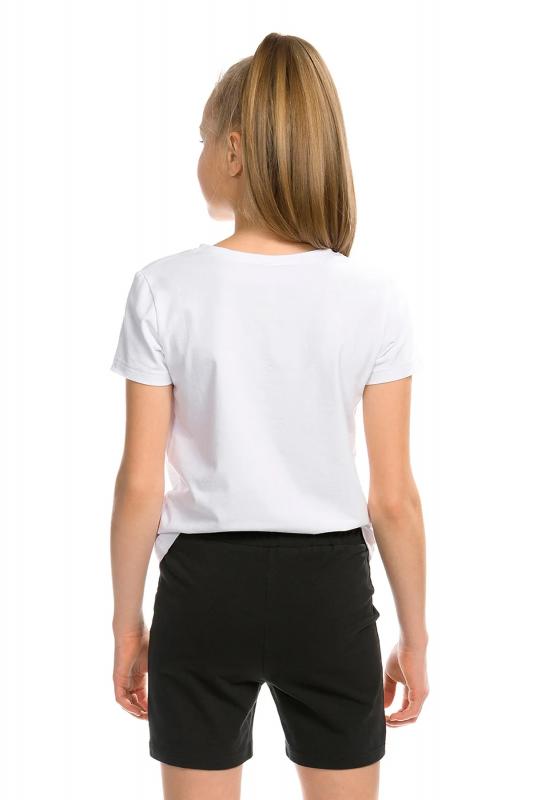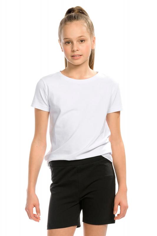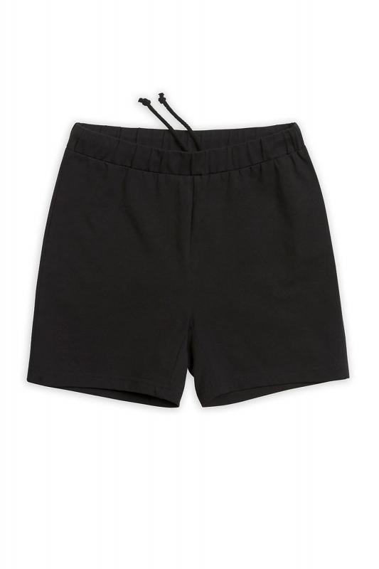 Шорты для девочек из хлопкового трикотажа с эластаном. Умеренный объем, пояс с широкой резинкой дополнен внутренним шнурком для регулировки объема.
