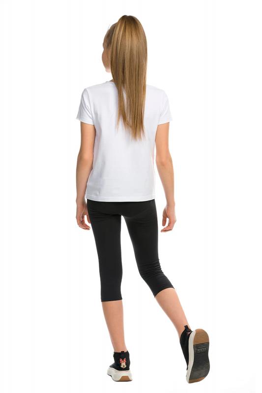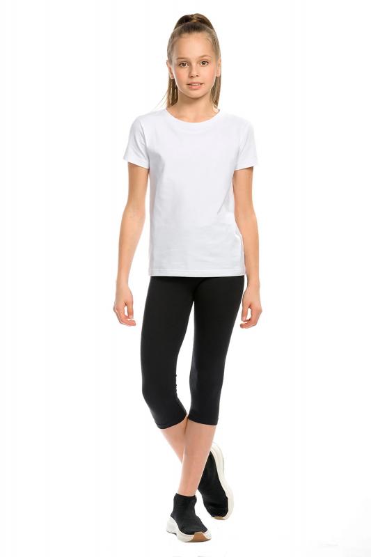 Укороченные лосины для девочек из хлопкового трикотажа с эластаном. Длина ниже колена. Комфортный пояс на резинке.