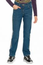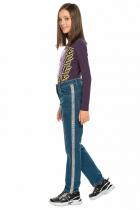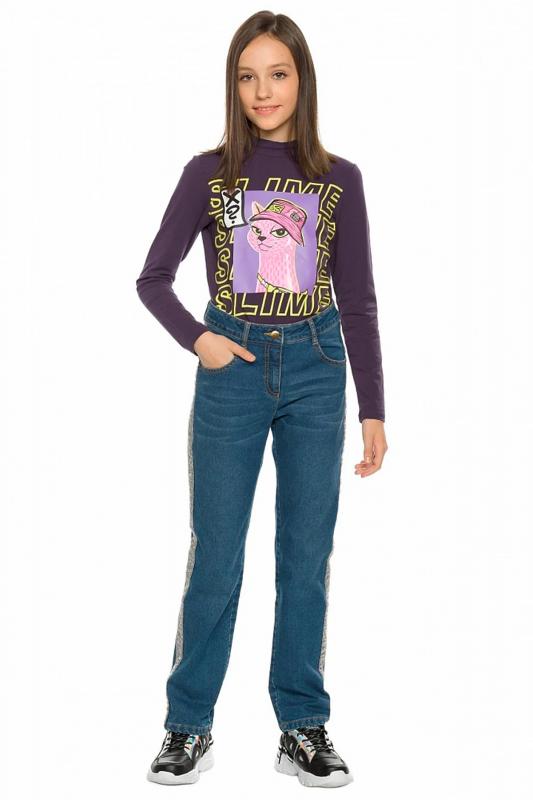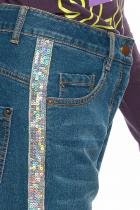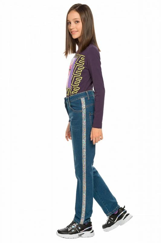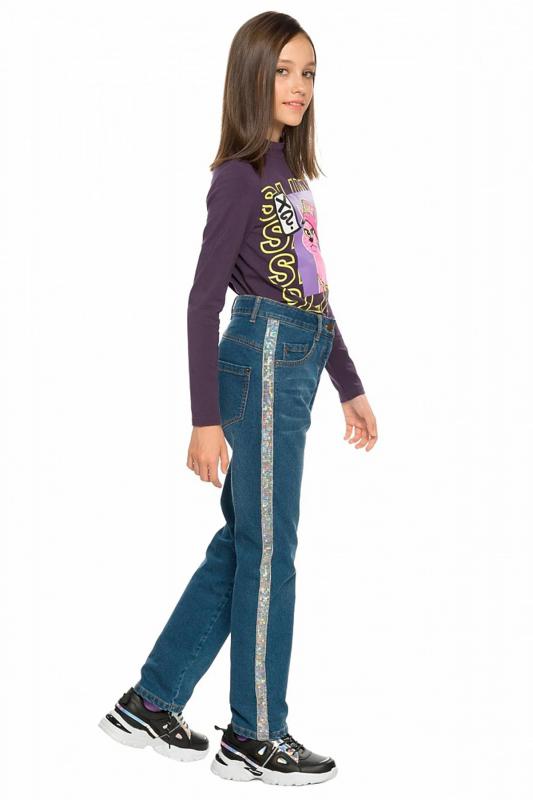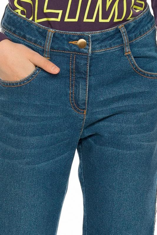 Утепленные эластичные джинсы для девочек RELAXED FIT с начесом. Полноценный гульфик с металлической молнией. По переду три кармана, сзади два накладных с металлической фурнитурой. По бокам лампасы из голографических пайеток.