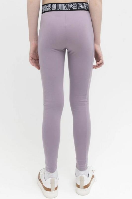 Трикотажные лосины для девочек. Плотные и эластичные. Не ограничивают движения. Прыгай, бегай, садись на шпагат и забирайся по канату они выдержат всё! По бокам лосин вставки из ткани контрастного цвета. Широкий мягкий пояс с мотивирующим текстом #Танцуй#Прыгай#Бегай (перевод) не будет сдавливать живот и врезаться в кожу. В этих лосинах быть стильной можно и на физкультуре, и на тренировке, и на прогулке.