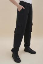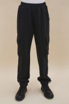 Детские брюки карго для девочки из футера. Штаны актуального свободного силуэта подарят ребёнку комфорт и свободу движений. По бокам удобные накладные карманы с отворотами, имитирующими клапаны. Широкая резинка в поясе исключает трение и раздражение. В поясе предусмотрен шнурок, с помощью которого можно регулировать объём и посадку брюк. По низу штанин внутренняя широкая резинка, что придаёт модели актуальную форму. Брюки детские лаконичного дизайна, без принта. Изделие неприхотливо в уходе. В составе ткани 100% высококачественного хлопка — модель приятна на ощупь и безупречно пропускает воздух, давая коже ребёнка дышать. Брюки широкого кроя выполнены в четырех цветах: черный, бежевый (трендовый песочный оттенок), молочный и синий джинс. Их легко сочетать с различными футболками, толстовками, худи и куртками. В линейке представлены следующие размеры: 1 (86): 2 (92): 3 (98): 4 (104): 5 (110): 6 (116): 7 (122): 8 (128): 9 (134): 10 (140): 11 (146). Отличные широкие брюки для девочки, подойдут как девочкам дошк