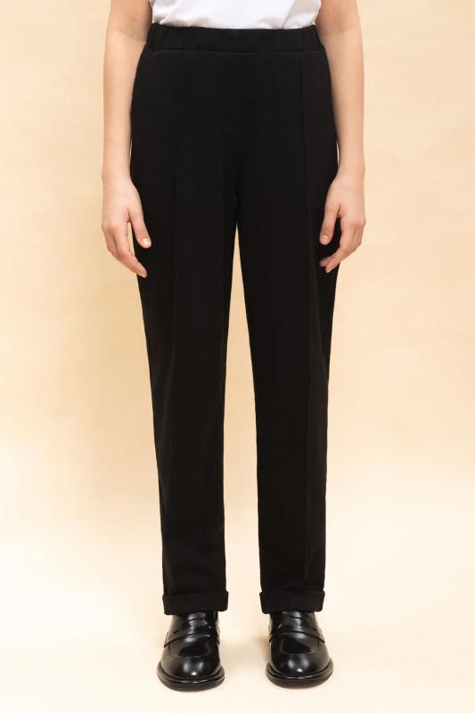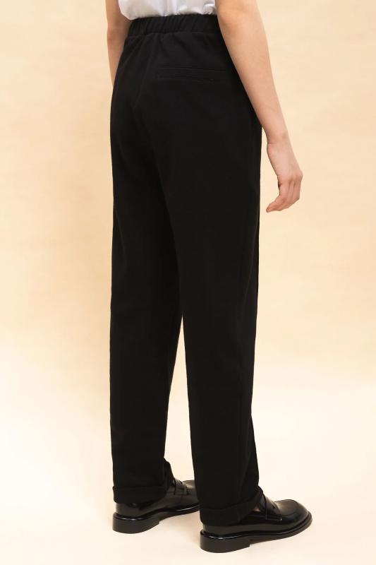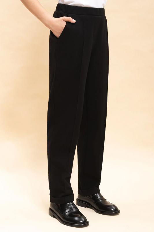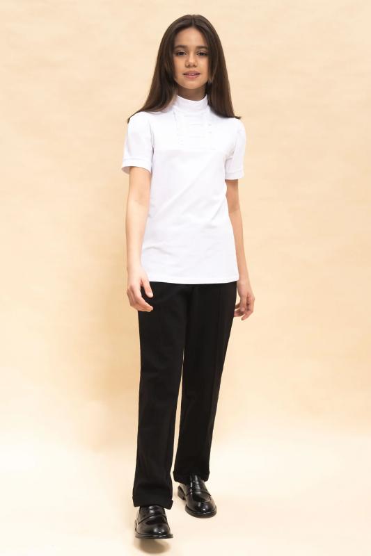 Трикотажные школьные брюки для девочки. Комфортные брюки на резинке идеально садятся на девочек с разной фигурой. Трикотажные брюки детские мягкие и эластичные, не стесняют движений даже самых активных детей. При этом внешне они выглядят как обычные брюки из швейной ткани: имитация гульфика по переду, имитация классического заднего брючного кармана с листочкой, застроченные стрелки по переду. Благодаря отсутствию застёжки ребёнок может быстро и легко надевать и снимать брюки. В поясе широкая резинка — не впивается в живот и позволяет легко регулировать объём изделия с фиксацией на специальные пуговицы. Боковые карманы добавляют функциональности и стиля этому предмету гардероба. По низу отвороты — актуальная деталь. В составе ткани преобладает качественный хлопок — брюки школьные для девочки на резинке приятны на ощупь, хорошо пропускают воздух, ребёнку не жарко. Полиэстер и эластан обеспечивают прочность и износостойкость — изделие прослужит не один сезон. Брюки детские универсальны, отлично сочетаются с раз