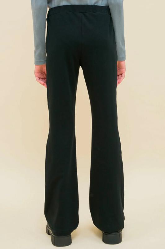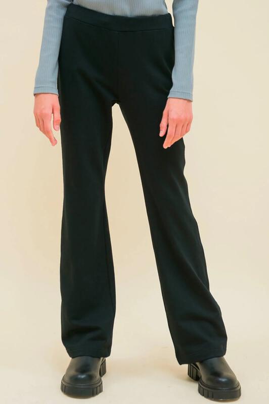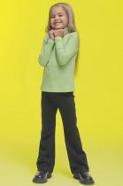 Брюки клёш для девочки из футера с начесом. Трендовые брюки-буткат подарят ребёнку свободу движений и ощущение комфорта и уюта. Одна из наиболее актуальных моделей сезона — штаны, плотно прилегающие на бёдрах и расклешённые от колена. Широкая резинка в поясе не давит и не перекручивается. С помощью шнурка со стоппером в поясе можно регулировать объём и посадку брюк. Изделие однотонное, без принта. За брюками легко ухаживать. В составе ткани (эластичный трикотаж) преобладает высококачественный хлопок — штаны тёплые, мягкие и прекрасно пропускают воздух — кожа ребёнка дышит. Благодаря эластану изделие хорошо тянется и при этом сохраняет отличную форму в течение длительного времени. Брюки детские выполнены в классическом чёрном цвете. Они легко комбинируются с различными футболками, джемперами, толстовками, куртками. В линейке представлены следующие размеры: 2 (92): 3 (98): 4 (104): 5 (110): 6 (116): 7 (122): 8 (128): 9 (134): 10 (140): 11 (146). Замечательные брюки на девочек дошкольного и младшего школьного в