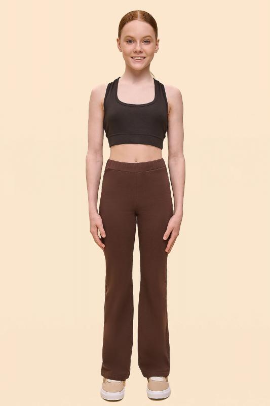 Брюки клёш для девочки из футера с начесом. Трендовые брюки-буткат подарят ребёнку свободу движений и ощущение комфорта и уюта. Одна из наиболее актуальных моделей сезона — штаны, плотно прилегающие на бёдрах и расклешённые от колена. Широкая резинка в поясе не давит и не перекручивается. С помощью шнурка со стоппером в поясе можно регулировать объём и посадку брюк. Изделие однотонное, без принта. За брюками легко ухаживать. В составе ткани (эластичный трикотаж) преобладает высококачественный хлопок — штаны тёплые, мягкие и прекрасно пропускают воздух — кожа ребёнка дышит. Благодаря эластану изделие хорошо тянется и при этом сохраняет отличную форму в течение длительного времени. Брюки детские выполнены в классическом чёрном цвете. Они легко комбинируются с различными футболками, джемперами, толстовками, куртками. В линейке представлены следующие размеры: 2 (92): 3 (98): 4 (104): 5 (110): 6 (116): 7 (122): 8 (128): 9 (134): 10 (140): 11 (146). Замечательные брюки на девочек дошкольного и младшего школьного в