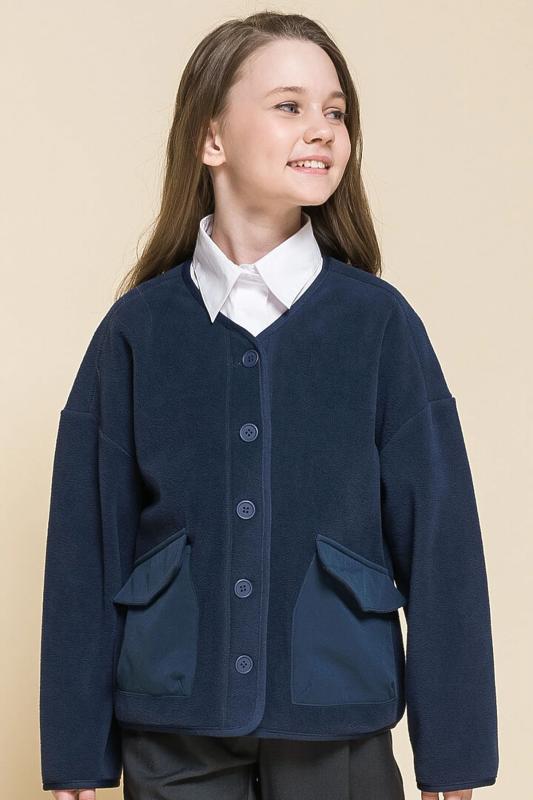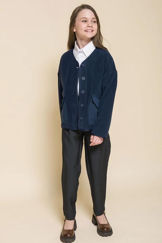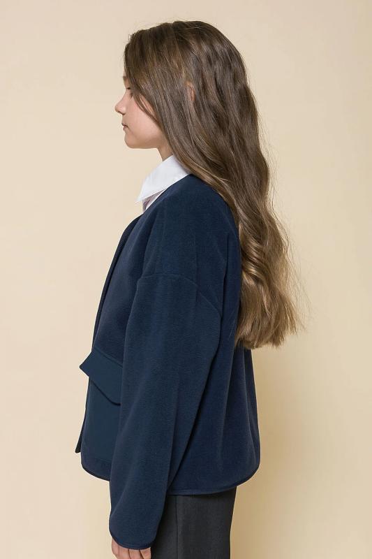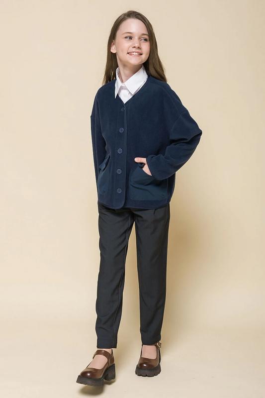 Описание: Кардиган свободного силуэта для девочки. Модель выполнена из флиса — материал лёгкий, тёплый и неприхотлив в уходе. Объемный крой, спущенное плечо – настоящий трендовый оверсайз. Пуговицы тон в тон с матовым покрытием софт-тач — приятны на ощупь и добавляют кардигану изысканности. Два объёмных накладных кармана с клапанами выполнены из матовой курточной ткани — оригинально и стильно. Окантовка декоративной трикотажной тесьмой — актуальный модный тренд. Кардиган можно брать на вырост — благодаря свободному силуэту он долго не станет малым. Девочкам с любым типом фигуры в нем будет комфортно в течение всего дня. Стильный и практичный вариант как для Школы, так и за ее пределами. Состав: 100% полиэстер"