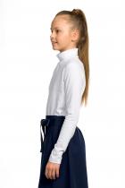Джемпер для девочек из мягкого хлопкового трикотажа с добавлением эластана, полуприлегающий силуэт, без застежки. Воротник-стойка отворачивается, деликатные сборки у горловины по центру переда.