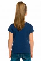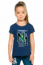 Футболка умеренного объёма с втачным рукавом. Вырез горловины круглый и декорирован полосатой рибаной. Принт с вышивкой переливающимися переворачивающимися пайетками, перевод Будь первой , и надписью, перевод Делай это потрясно .