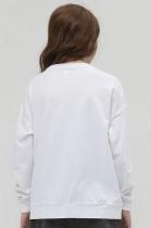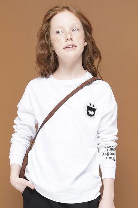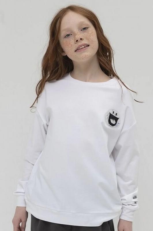 Мягкий, приятный к телу трикотажный джемпер для девочки. Удобный и свободный, ведь прямой силуэт и спущенное плечо не стесняют движения. Белый цвет изделия не боится стирок и ежедневной носки. Хорошо сочетается с любыми брюками или юбкой. Важные акценты. Оригинальный принт со смыслом на рукаве С другой точки зрения (перевод). Объемная нашивка смайлик с блестящим конфетти внутри. Современный джемпер, который легко полюбить, приятно носить в школе и в кругу друзей и везде чувствовать себя особенной.