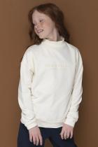 Универсальная модель школьного джемпера в стиле унисекс, оверсайз силуэта из хлопкового футера. ⠀ Почти не мнётся, не притягивает волосы, пыль и пр., отлично впитывает влагу. Нежный молочный цвет не боится стирок и ежедневной носки. ⠀ Силуэт свободный, но манжеты на рукавах и по низу плотно прилегают по фигуре. Особенная деталь: приятный на ощупь выпуклый принт «Тake a break» (перевод «Возьми паузу»). ⠀ Легко комбинируется с брюками, джинсами, шортами. И даже с платьями и юбками!
