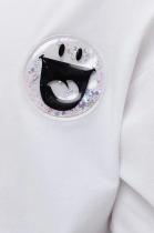 Мягкий, приятный к телу трикотажный джемпер для девочки. Удобный и свободный, ведь прямой силуэт и спущенное плечо не стесняют движения. Белый цвет изделия не боится стирок и ежедневной носки. Хорошо сочетается с любыми брюками или юбкой. Важные акценты. Оригинальный принт со смыслом на рукаве С другой точки зрения (перевод). Объемная нашивка смайлик с блестящим конфетти внутри. Современный джемпер, который легко полюбить, приятно носить в школе и в кругу друзей и везде чувствовать себя особенной.