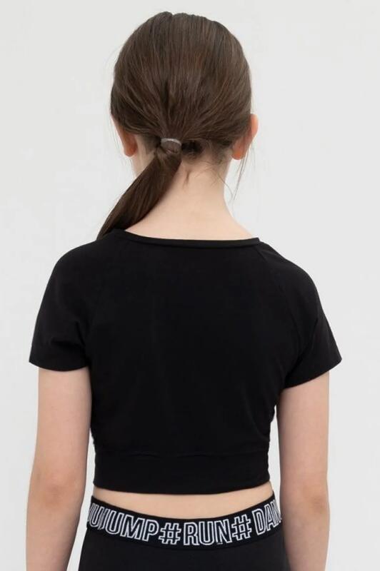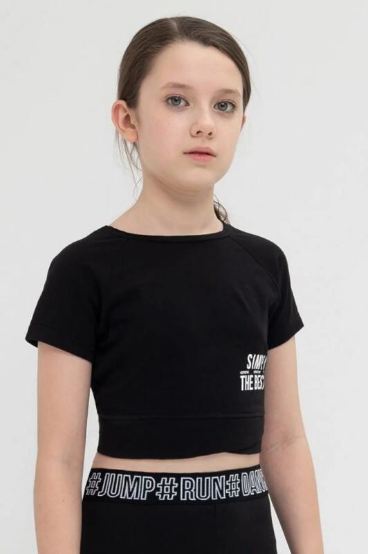 Спортивная укороченная футболка топ для девочки из натурального материала. Мягкий, эластичный, прочный, дышащий. Не теряет свойств после многочисленных стирок. Рукава реглан не сдерживают активные движения ребенка. А фигурная линия низа плотно, но мягко зафиксирует топ на месте и он не будет подниматься вверх. Небольшой, но заметный и стильный принт переводится как Просто лучшая, оставайся активной выделит юную модницу и придаст ей уверенности.